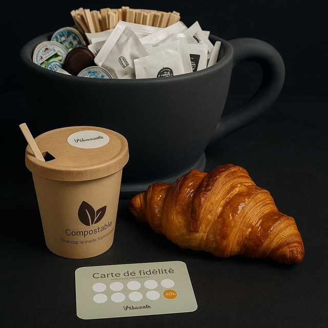 Un café fraîchement préparé accompagné d’un croissant, pour bien commencer la journée.